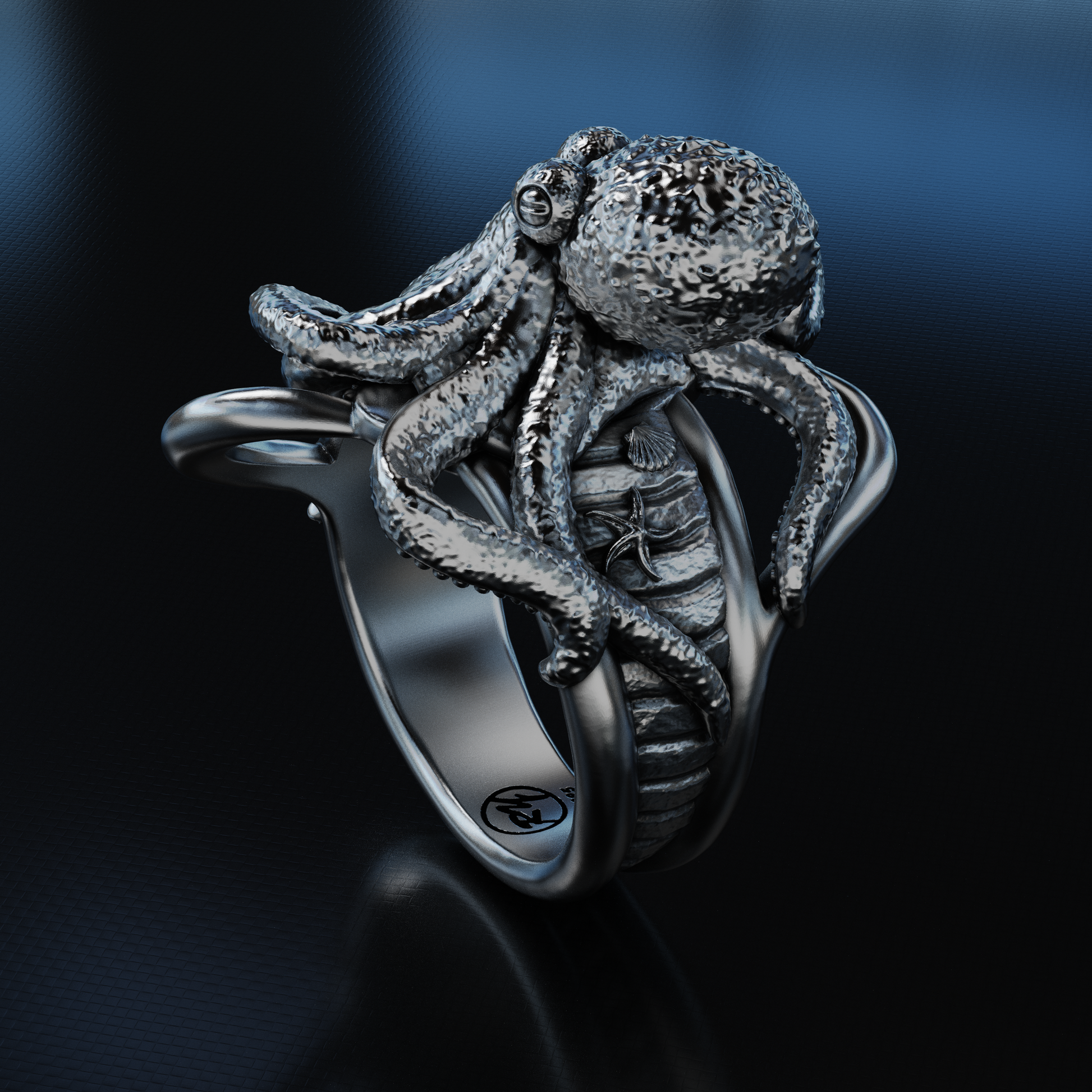Beautifully distinctive and ready to ship, this sterling silver octopus statement ring is perfect for anyone who loves the ocean. Sculpted to sit low on the finger, the octopus design offers both bold presence and everyday comfort—crafted to be worn effortlessly without catching or snagging.
